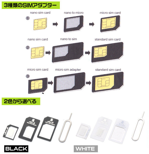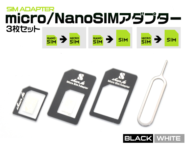 Micro/nanoSIMカード変換アダプタ3枚セット
