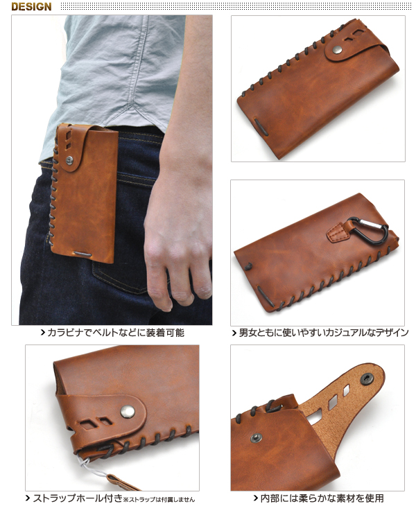 カラビナでベルトなどに装着可能なスマートフォン用ベルトポーチ!スマートフォンが入る丁度良い大きさで、オシャレにスマートフォンを持ち歩くことができます。