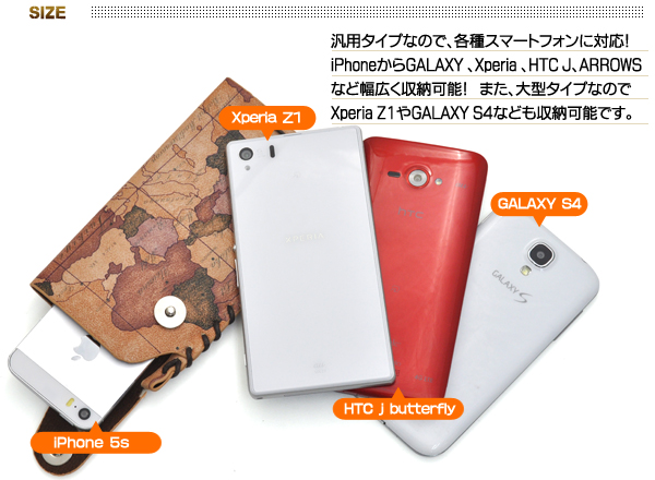 iPhoneからGALAXY、 Xperia 、HTC J、ARROWS など幅広く収納可能!また大型タイプなのでXperia Z1HTC J butterfly、GALAXY S4なども収納できます!