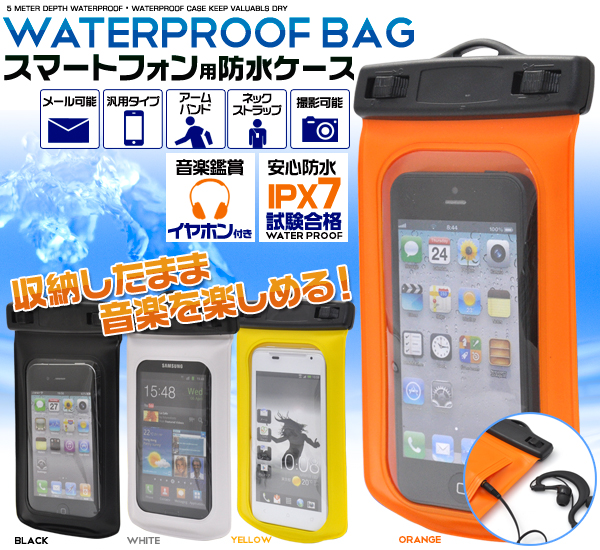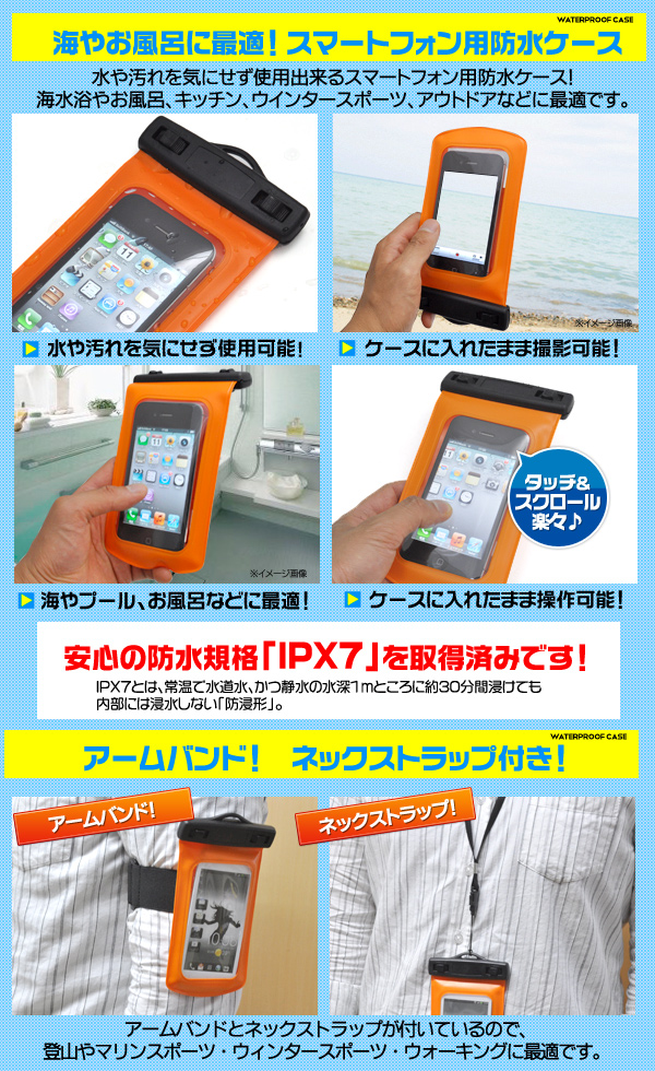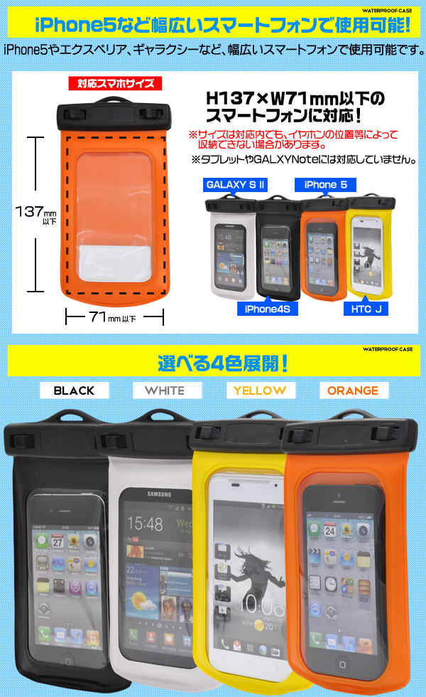 海水浴やお風呂に便利な、スマートフォン用防水カラーケース!