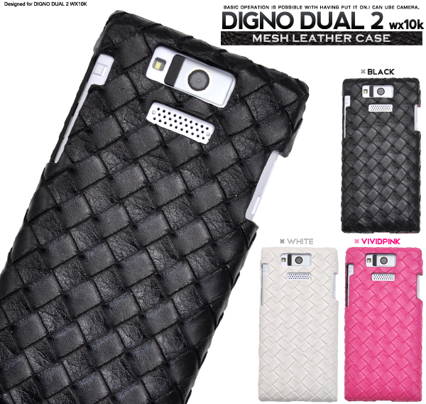 スタイリッシュなメッシュレザーデザインのDIGNO DUAL 2 WX10K用ケース 衝撃やキズ、埃などからしっかりとDIGNO DUAL 2 WX10Kを守ります。 カメラはもちろん、イヤホンや各種ボタンなどをケースに入れたまま操作可能です! ブラック、ホワイト、ビビットピンクの3色展開です。 ※ライセンス商品ではありません。 ※DIGNO DUAL 2 WX10Kは付属しません。 |