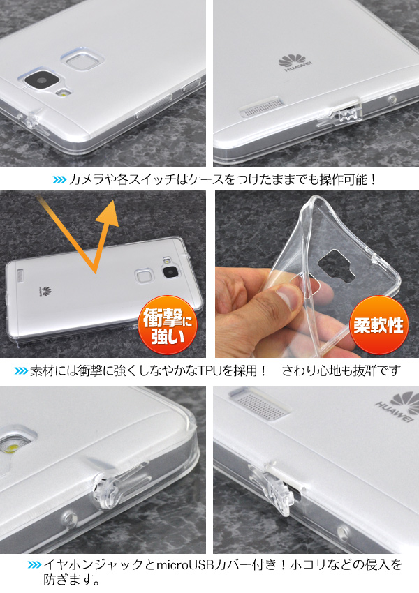 しなやかで衝撃に強い!Ascend Mate7用クリアソフトケース