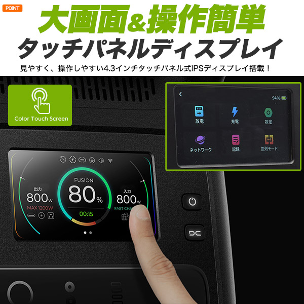 | ■大容量1126Wh&高出力1200W(瞬間最大出力2400W)! 大容量&高出力のポータブル電源は、アウトドアや災害時など、電源供給が不安定な環境に最適です。ドライヤーや電子レンジなど、高消費電力の家電にも対応します。 ■出力12ポート! USB-C(100W)×2、USB-C(18W)×2、USB-A(18W)×2、AC×3、DC×2、シガーソケット×1の計12出力ポートが搭載!様々な機器や端末の充電に対応できます。 ■3種類の充電方法! AC電源とシガーソケット2種類の方法で本体を充電可能。また、ソーラーパネルでも充電可能です。 ※ソーラーパネルは付属しません。 ■1.5時間で充電可能! 急速充電機能「Power Turbo」モード搭載!約1.5時間で本体の充電が可能です。 ■リン酸鉄+BMS 安全で耐久性が高い! 安心・安全のBMSバッテリー保護システムを搭載!また、リン酸リチウムイオンセルを採用しているので、より高い安全性を実現しています。 ■大画面&操作簡単!タッチパネルディスプレイ! 見やすく、操作しやすい4.3インチタッチパネル式IPSディスプレイ搭載! ■専用アプリ対応! 専用アプリに対応しているので、遠隔操作も可能!残量などもスマホで確認できます。 |