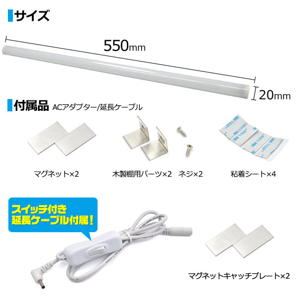 | サイズ(約) | 長さ550×縦15×横15×発光面20mm | |
