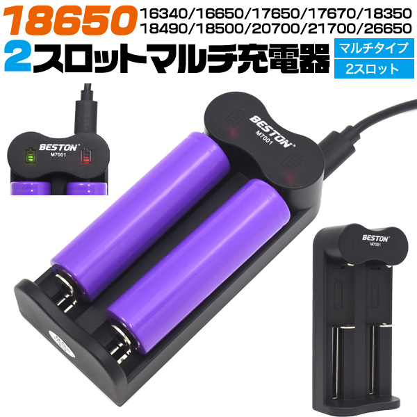18650の充電に最適!2スロットマルチUSB充電器 |