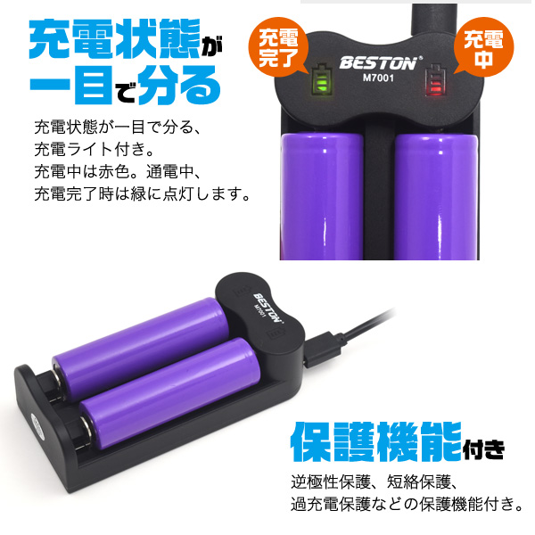 | 対応電池規格 | 16340/16650/17650/17670/18350/18490 18500/18650/20700/21700/26650 (3.7V リチウムイオンバッテリー) |